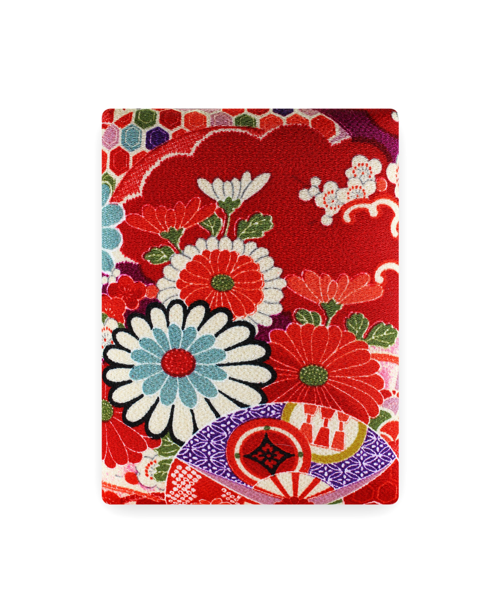 - Une boîte habillée de tissu crêpe traditionnel Chirimen, doublure intérieure en papier Washi faite à la main. Dimensions extérieures : environ 15 x 20 x 7,5 cm